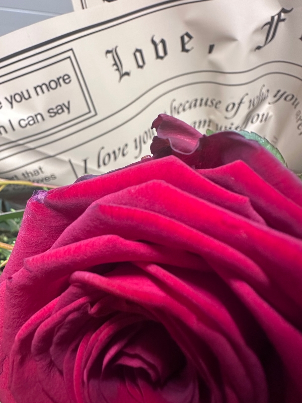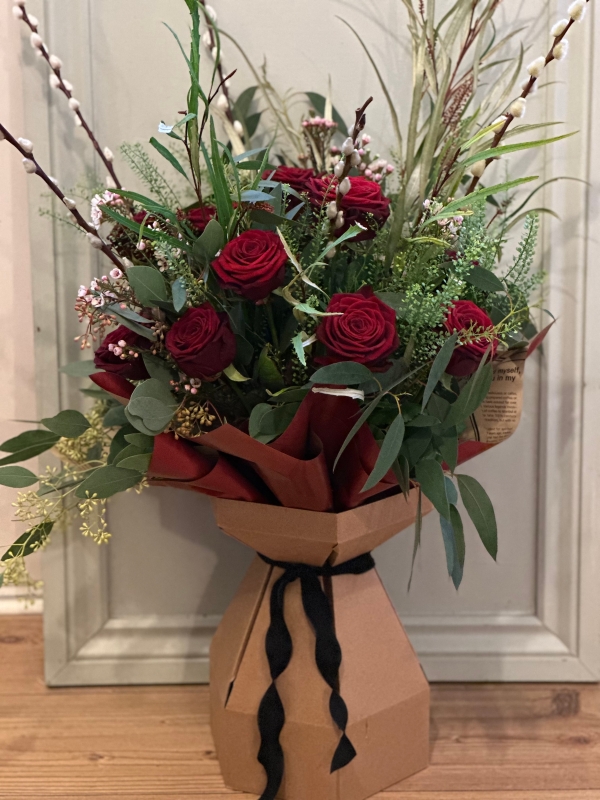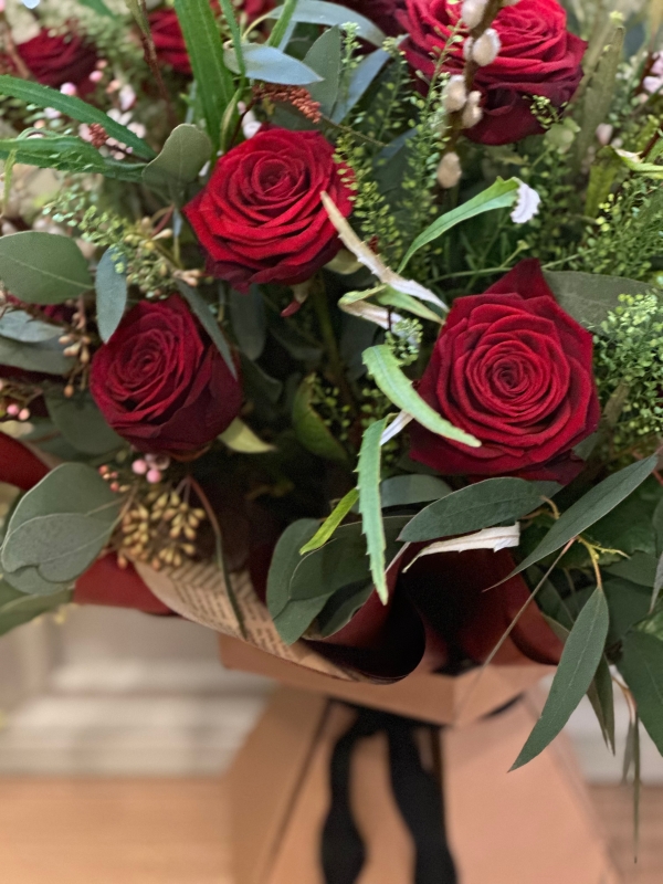 Say ‘I love you” in style with 12 of the very best long-stemmed ‘Naomi’ roses hand tied with luxurious foliage, placed in water and presented in a gift box with co-ordinating ribbon, complete with your message hand-written on a card.